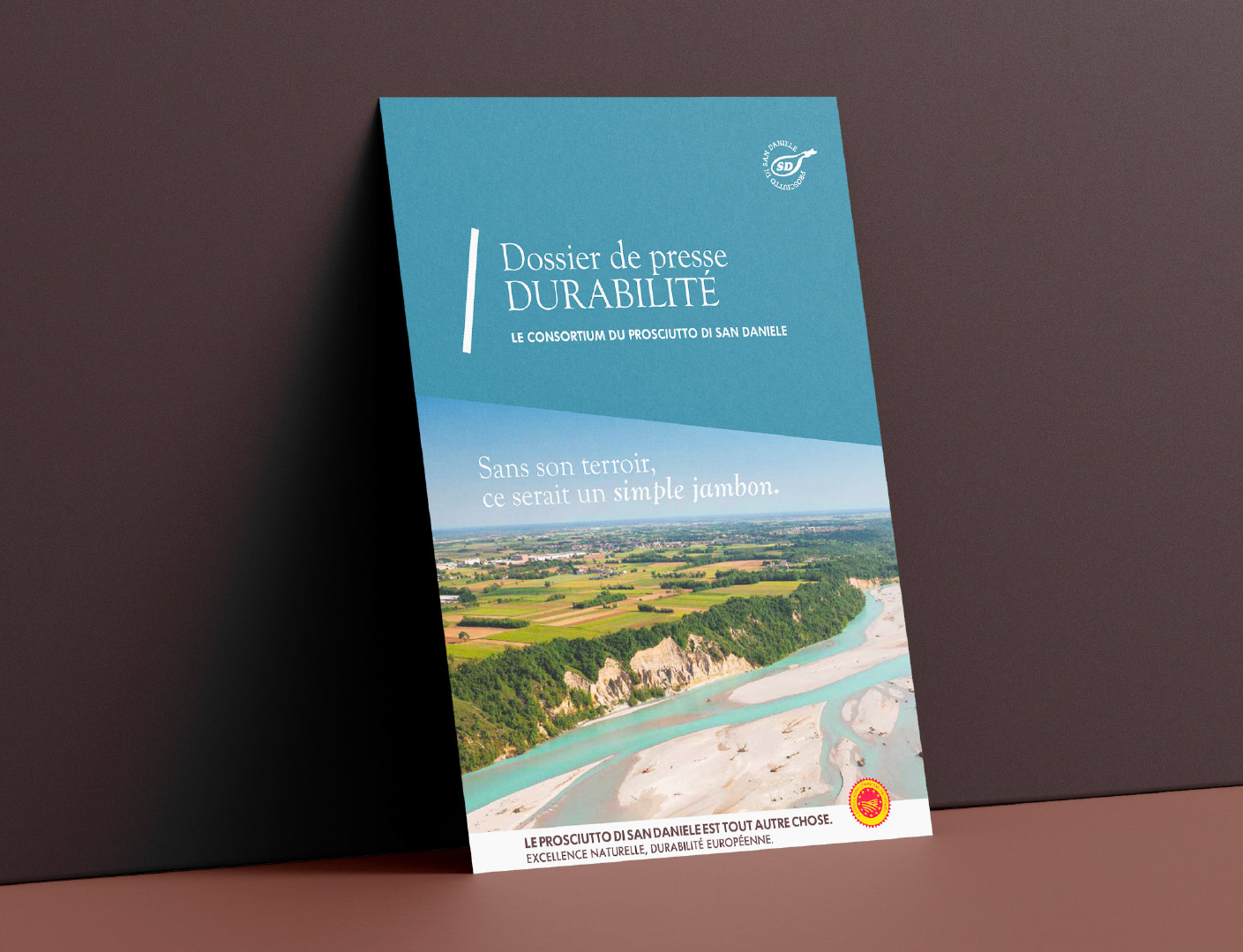 Les caractéristiques uniques du produit s’expriment dans le visuel de la campagne qui accompagne le territoire et le produit en soulignant son lien immuable. La créativité relie une image photographique évocatrice de la rivière Tagliamento, symbole du territoire, à un cliché du jambon San Daniele, qui en raconte le traitement et le goût. Les deux éléments s’unissent harmonieusement dans un contenu visuel percutant.